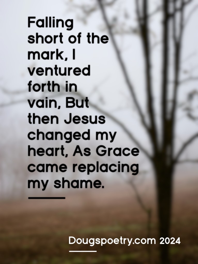 Replacing my Shame Posted bydougspoetryDecember 11, 2024Posted inChristian, Poetry, ReligionTags:Calvary, Christian, Grace, Hope, Jesus, Poem, Poetry, Redemption, Religion Share this: Click to share on Facebook (Opens in new window) Facebook Click to share on X (Opens in new window) X Like Loading... Published by dougspoetry I am an avid poet, writing about life and faith. View more posts