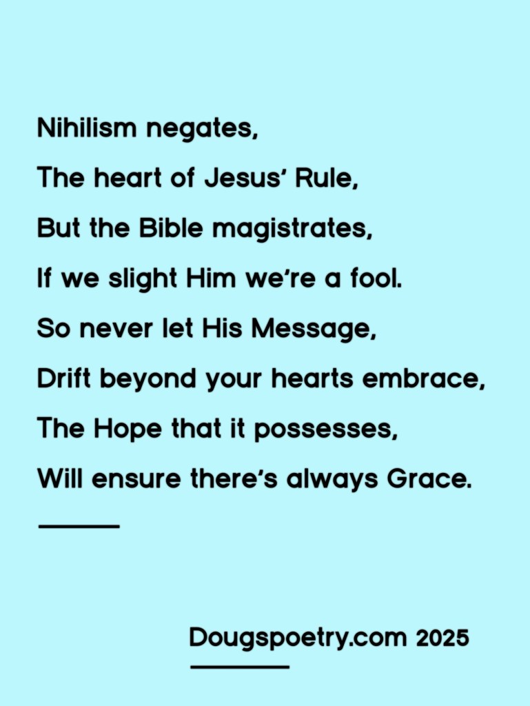 Your Hearts Embrace Posted bydougspoetryFebruary 11, 2025Posted inChristian, Poetry, ReligionTags:Calvary, Christian, Grace, Hope, Jesus, Poem, Poetry, Redemption, Religion Share this: Click to share on Facebook (Opens in new window) Facebook Click to share on X (Opens in new window) X Like Loading... Published by dougspoetry I am an avid poet, writing about life and faith. View more posts