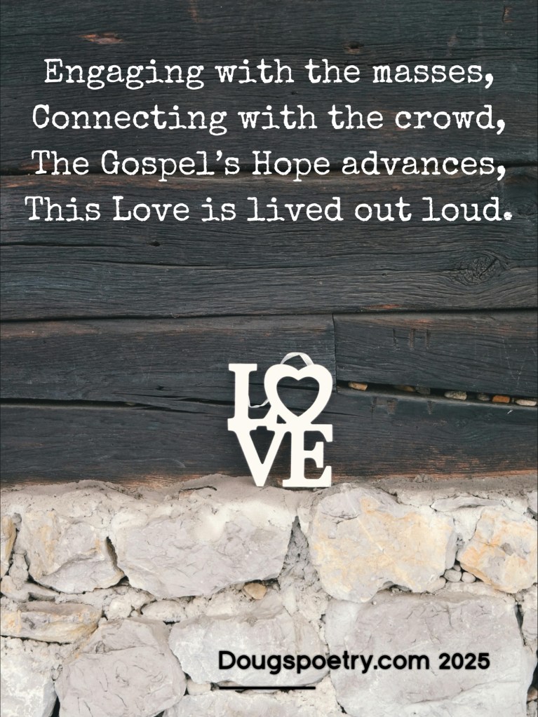 Lived Out Loud Posted bydougspoetryFebruary 14, 2025Posted inChristian, Poetry, ReligionTags:Calvary, Christian, Grace, Hope, Jesus, Poem, Poetry, Redemption, Religion Share this: Click to share on Facebook (Opens in new window) Facebook Click to share on X (Opens in new window) X Like Loading... Published by dougspoetry I am an avid poet, writing about life and faith. View more posts