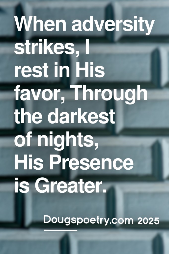 Rest in His Favor Posted bydougspoetryMarch 15, 2025Posted inChristian, Poetry, ReligionTags:Calvary, Christian, Grace, Hope, Jesus, Poem, Poetry, Redemption, Religion Share this: Click to share on Facebook (Opens in new window) Facebook Click to share on X (Opens in new window) X Like Loading... Published by dougspoetry I am an avid poet, writing about life and faith. View more posts