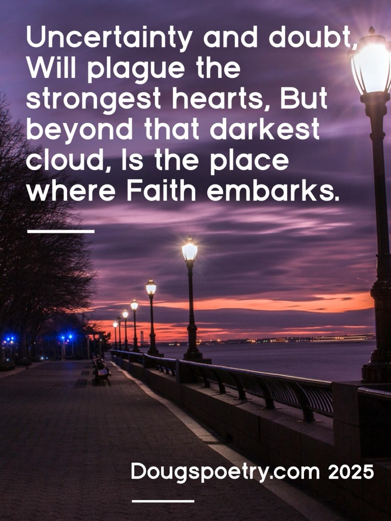 Where Faith Embarks Posted bydougspoetryMarch 16, 2025Posted inChristian, Poetry, ReligionTags:Calvary, Christian, Grace, Hope, Jesus, Poem, Poetry, Redemption, Religion Share this: Click to share on Facebook (Opens in new window) Facebook Click to share on X (Opens in new window) X Like Loading... Published by dougspoetry I am an avid poet, writing about life and faith. View more posts