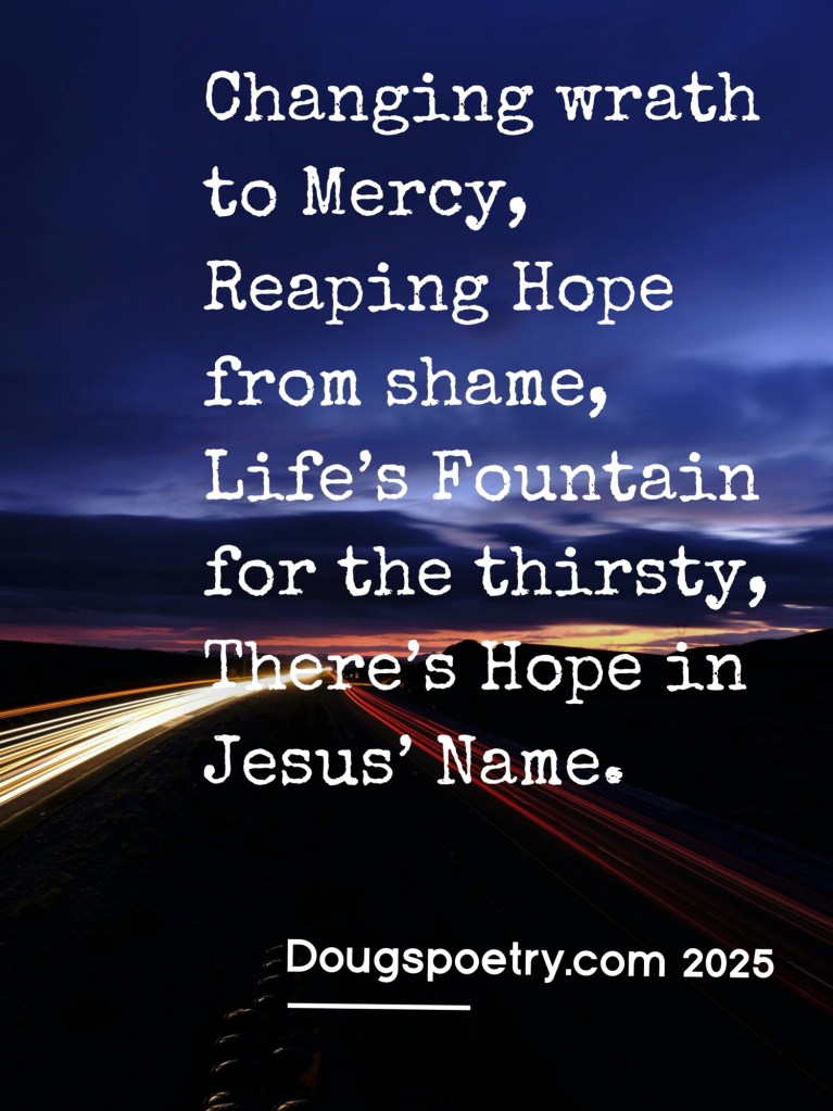 There’s Hope Posted bydougspoetryMarch 22, 2025Posted inChristian, Poetry, ReligionTags:Calvary, Christian, Grace, Hope, Jesus, Poem, Poetry, Redemption, Religion Share this: Click to share on Facebook (Opens in new window) Facebook Click to share on X (Opens in new window) X Like Loading... Published by dougspoetry I am an avid poet, writing about life and faith. View more posts