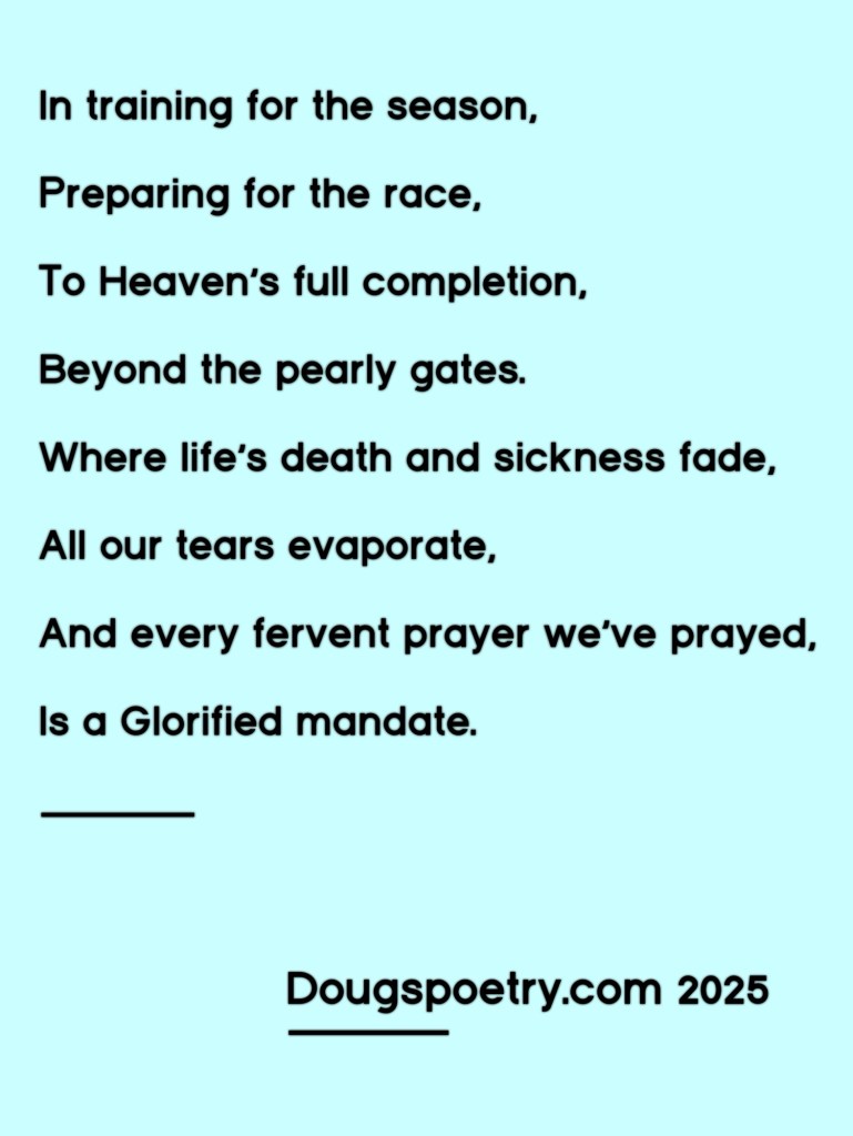 Tears evaporate Posted bydougspoetryOctober 28, 2025Posted inChristian, Poetry, ReligionTags:Calvary, Christian, Grace, Hope, Jesus, Poem, Poetry, Redemption, Religion Share this: Click to share on Facebook (Opens in new window) Facebook Click to share on X (Opens in new window) X Like Loading... Published by dougspoetry I am an avid poet, writing about life and faith. View more posts