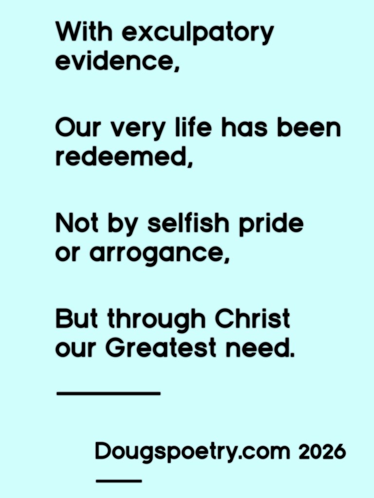 Our Greatest Need Posted bydougspoetryApril 6, 2026Posted inChristian, Poetry, ReligionTags:Calvary, Christian, Grace, Hope, Jesus, Poem, Poetry, Redemption, Religion Share this: Share on Facebook (Opens in new window) Facebook Share on X (Opens in new window) X Like Loading... Published by dougspoetry I am an avid poet, writing about life and faith. View more posts